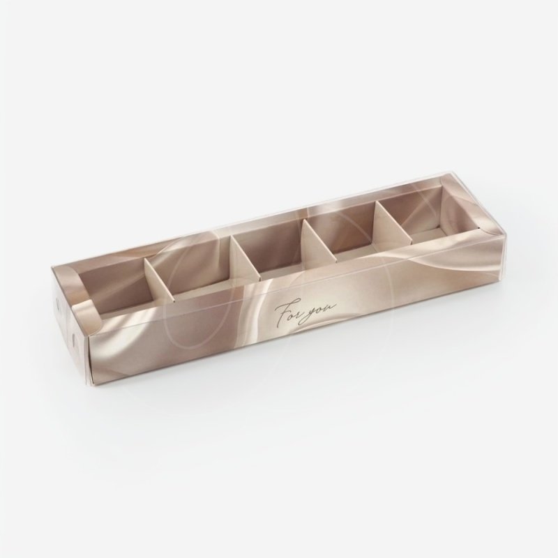 Коробка на 5 конфет с пластиковой крышкой "For You" 23х6х3 см