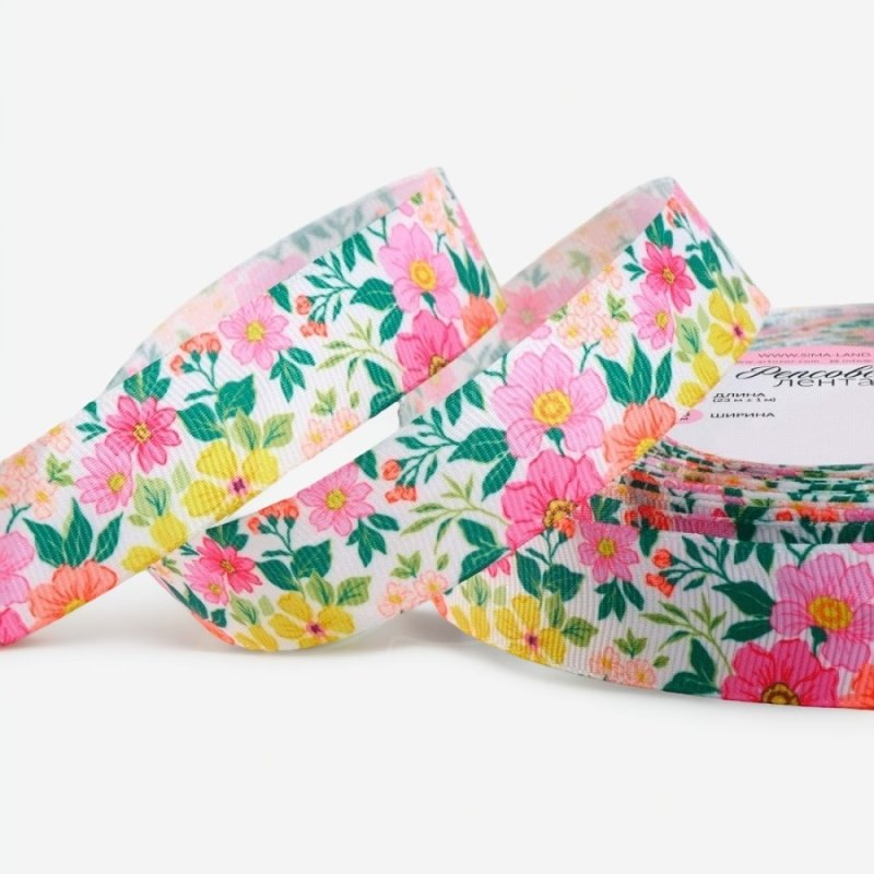 Доставка Лента для декора и упаковки репсовая "Цветы" 2,5 см 23 м из магазина в вашем городе: