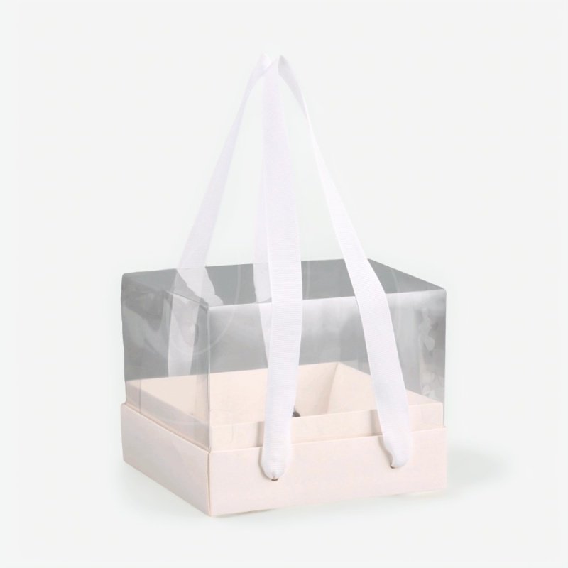 Коробка для бенто-торта с окном самосборная и не требует дополнительного скрепления.