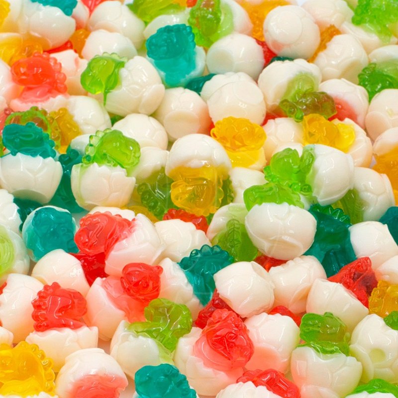 | Состав | вода, сахар, мальтозный сироп, глюкоза пищевая, агар-агар, пектин, желатин, кислоты: лимонная кислота, яблочная кислота, стабилизаторы: сорбитол жидкий, цитрат натрия, консервант: сорбат калия, эмульгатор: октил и децилглицерат, пчелиный воск, карнаубский воск, ароматизаторы идентичные натуральным, красители: Е102, Е110, Е129, Е133, E171 |