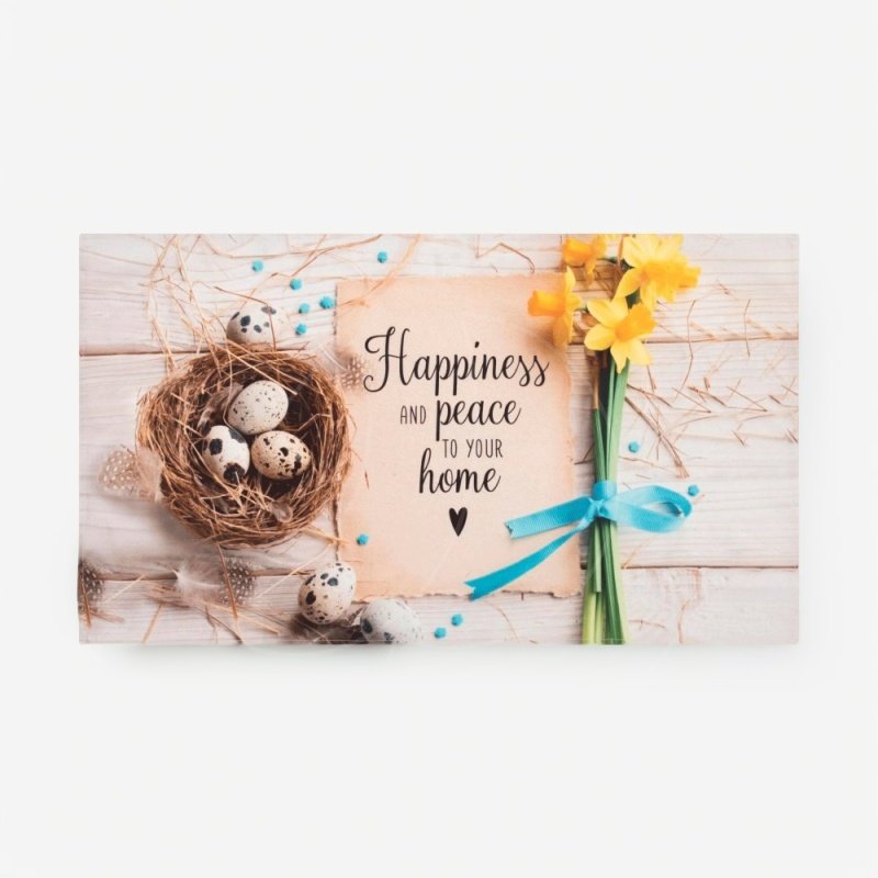 Вафельное полотенце с пасхальным рисунком станет тёплым и душевным дополнением к праздничному убранству.