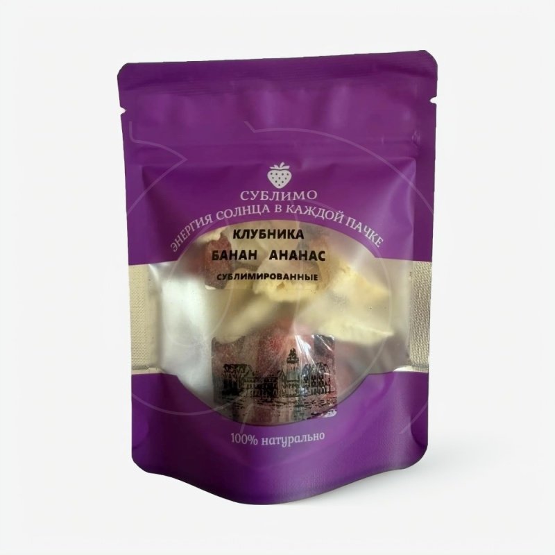 | Состав | сублимированная клубника, банан, ананас |