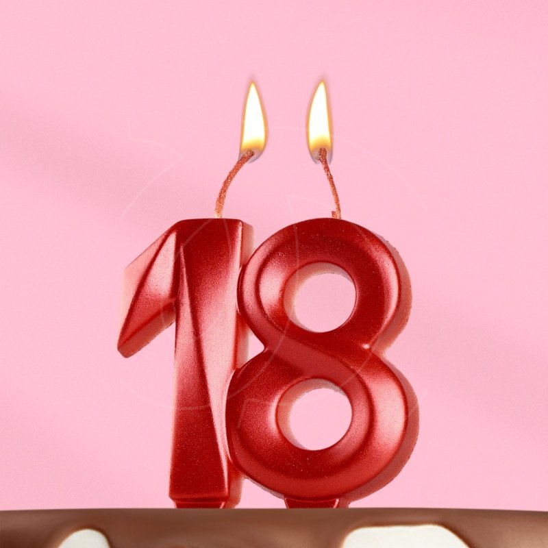 Свеча декоративная Цифра "18" Красный металлик 18 см