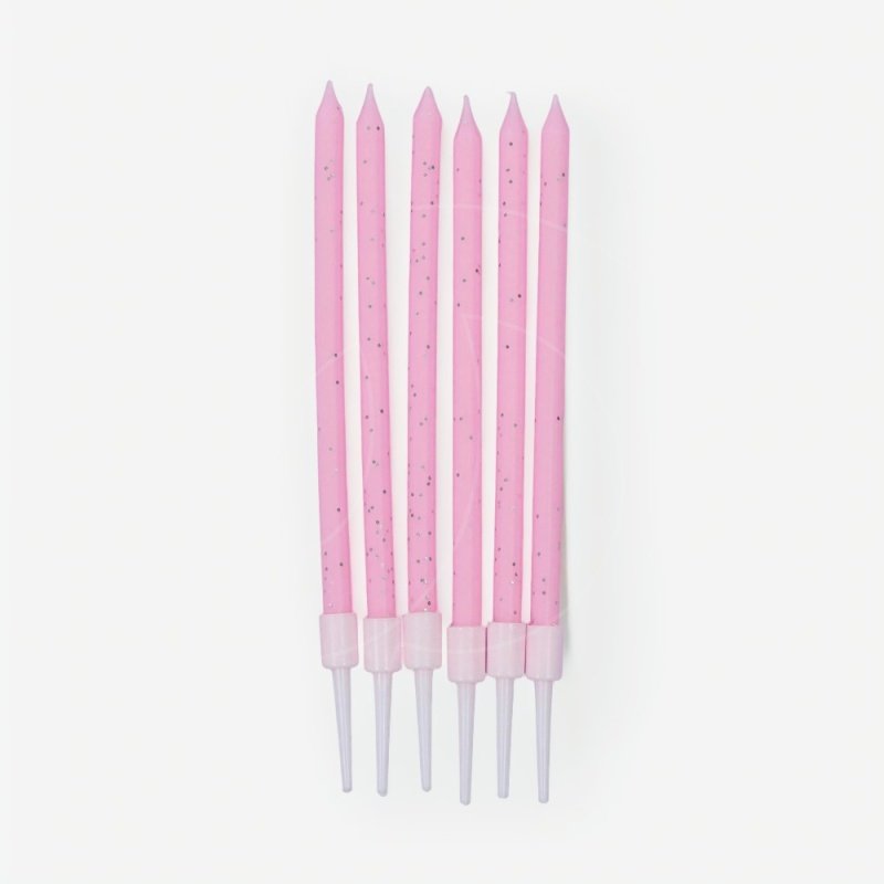 Свечи декоративные "Розовые с блёстками" 10 см 6 шт
