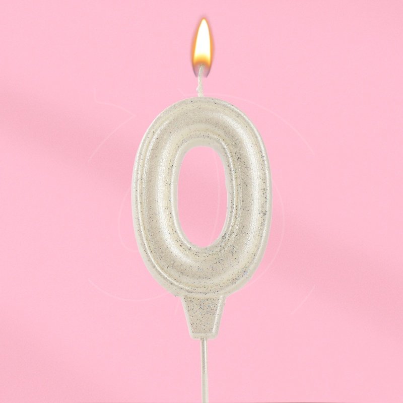 Свеча декоративная Цифра "0" Жемчужный перламутр с блёстками